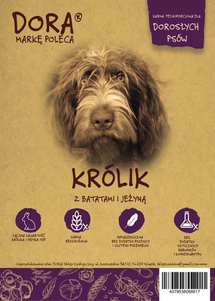90,00złDORA KONINA Z BATATAMI I GRANATEM 2 KG Karma pełnoporcjowa dla dorosłych psów 45% łączna zawartość koniny(bogate w niezbędne aminokwasy oraz wiele witamin i minerałów ,które mogą mieć pozytywny wpływ na ogólny stan zdrowia i samopoczucia) Minimum 26% świeżo przygotowanej koniny (Etycznie pozyskiwane źródło wysoce przyswajalnego białka.) Suplement omega-3(Wspomaga prawidłową kondycje skóry i sierści) Zdrowy układ…