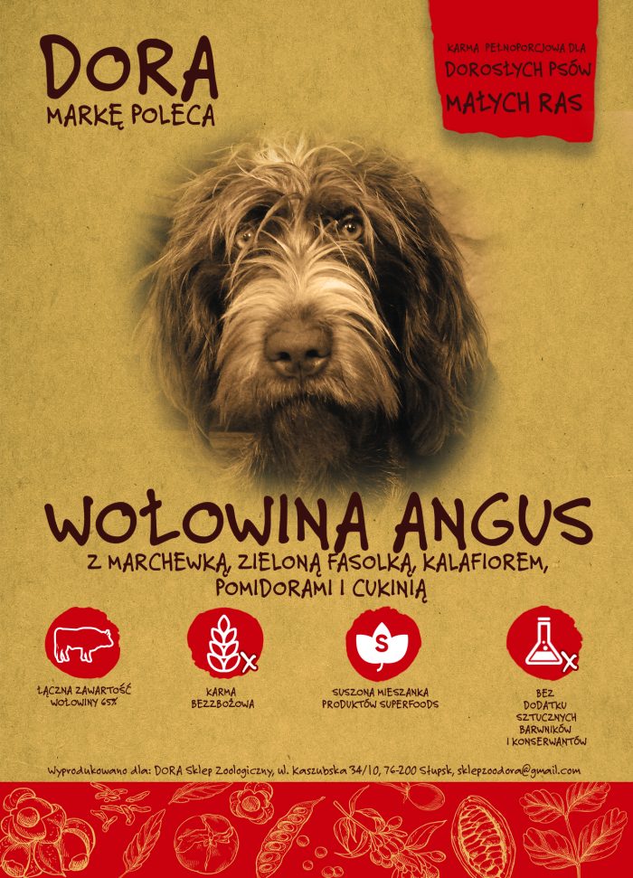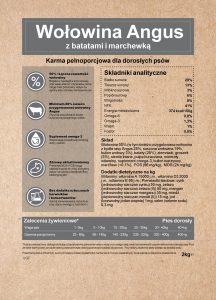 280,00złWOŁOWINA ANGUS Z BATATAMI I MARCHEWKĄ 12KG Karma bezzbożowa, hipoalergiczna, bez konserwantów konserwowana wyciągiem z rozmarynu W skład karm DORA wchodzą bataty i ziemniaki, dzięki czemu są one odpowiednie dla psów z nietolerancja lub nadwrażliwością na zboża. Łączna zawartość wołowiny 50% Minimum 26% świeżo przygotowanej wołowiny Angus – wołowina z bydła rasy Angus wywodząca sie z terenów północno-wschodniej Szkocji.Uważana…